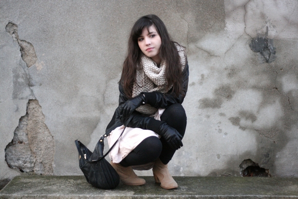 Robe Diabl’ess, Cuir Bershka, Echarpe H&M, Boots Andre, Sac vintage // Diabl’ess Dress, Bershka leather jacket, H&M scarf, Andre Boots, Vintage Bag